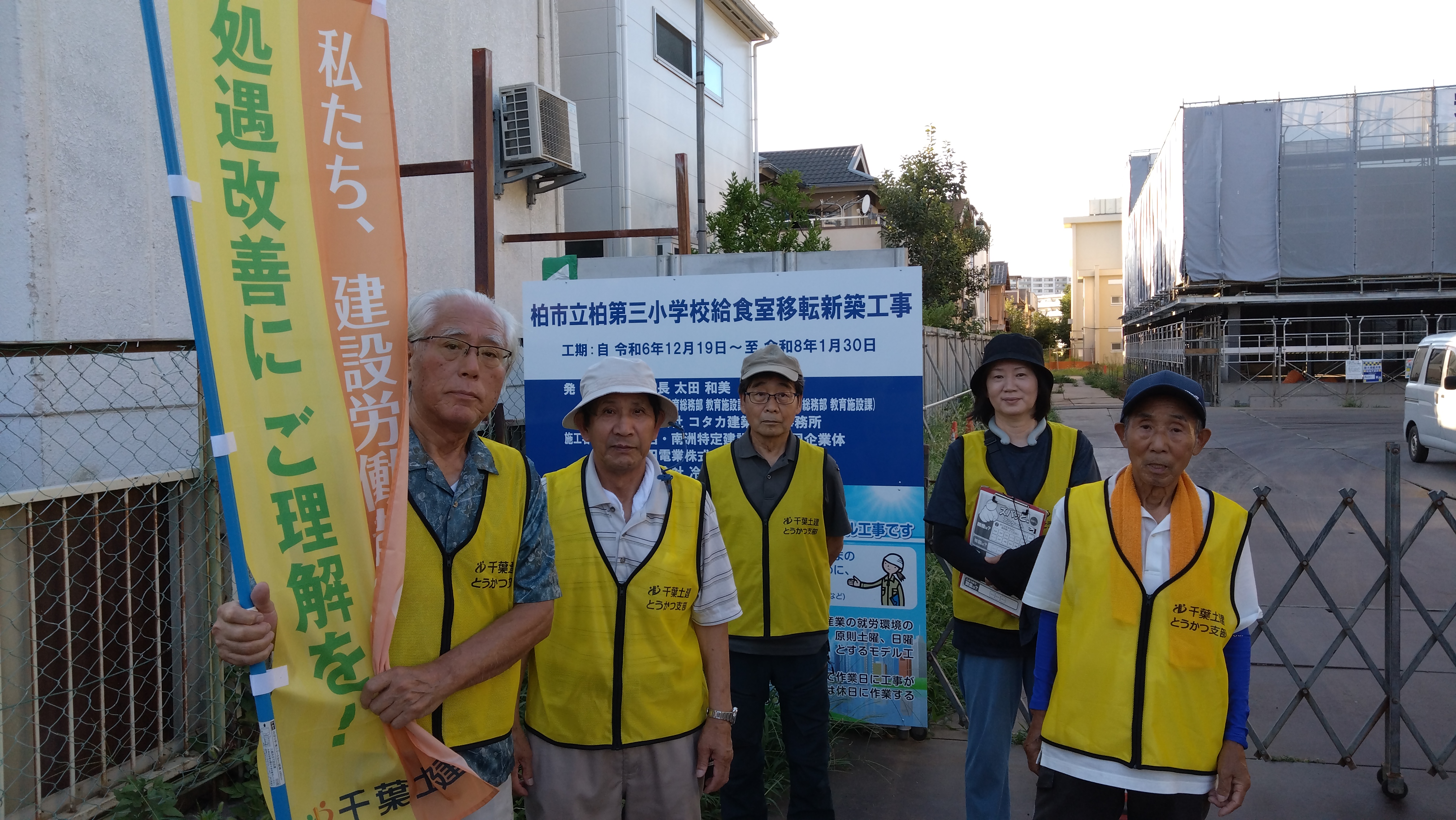 今月は、柏市・流山市・我孫子市の3現場で真夏のキックオフ宣伝を実施しました。