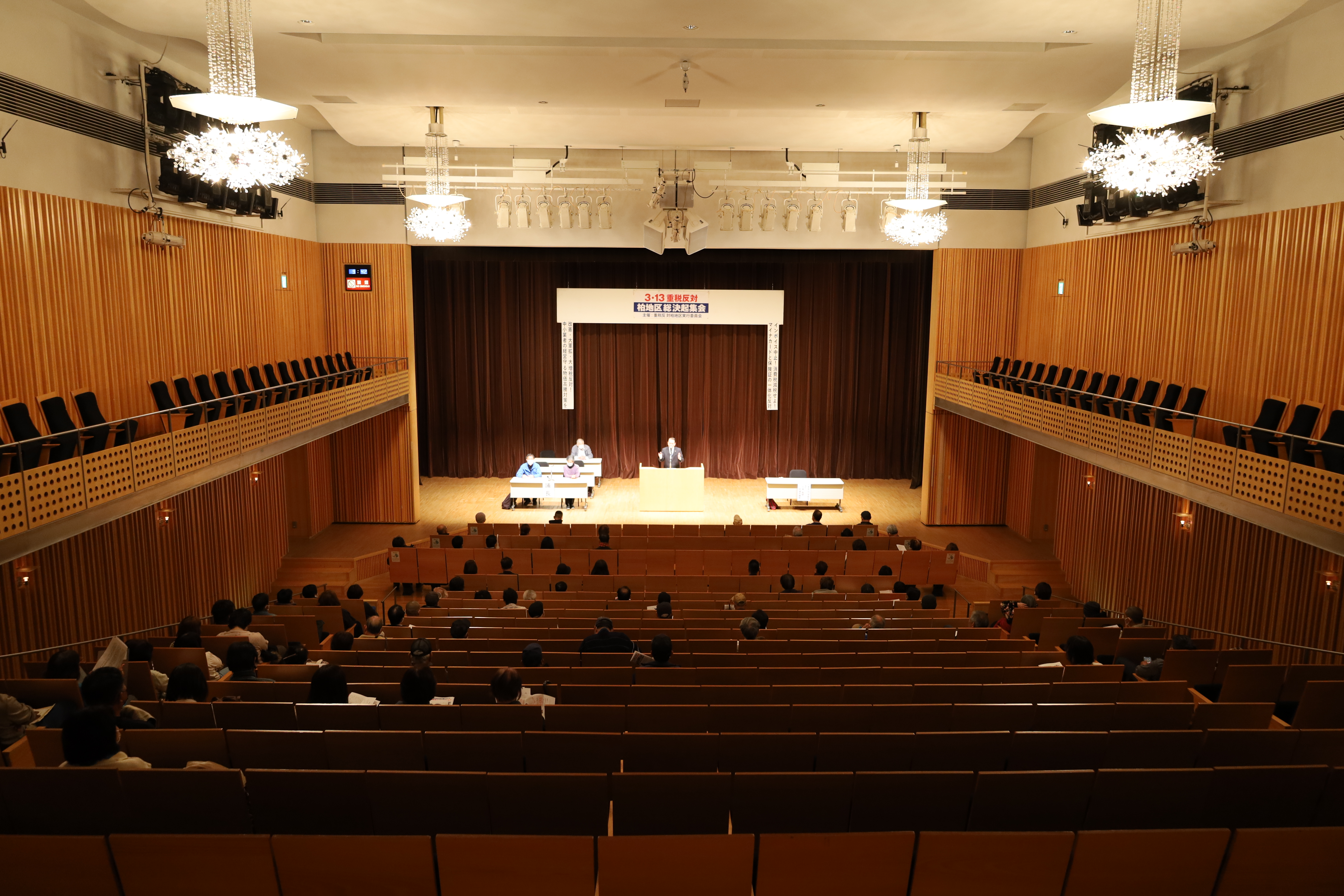 3月13日に柏市のアミュゼ柏クリスタルホールにて3.13重税反対柏市区総決起集会が開催されました。